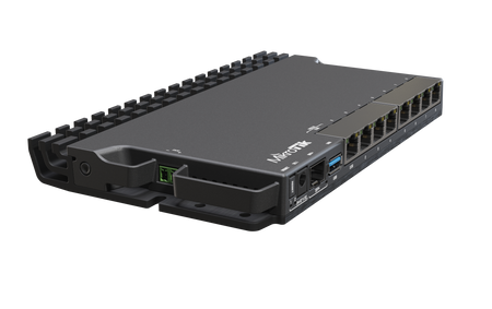 Mikrotik RouterBOARD 5009UG+S+ with Marvell Armada ARMv8 CPU, 1GB RAM, 1GB NAND storage, 1x 2.5GLAN, 7x 1GLAN, 1x SFP+ port, RouterOS L5, metal desktop case, PSU.
